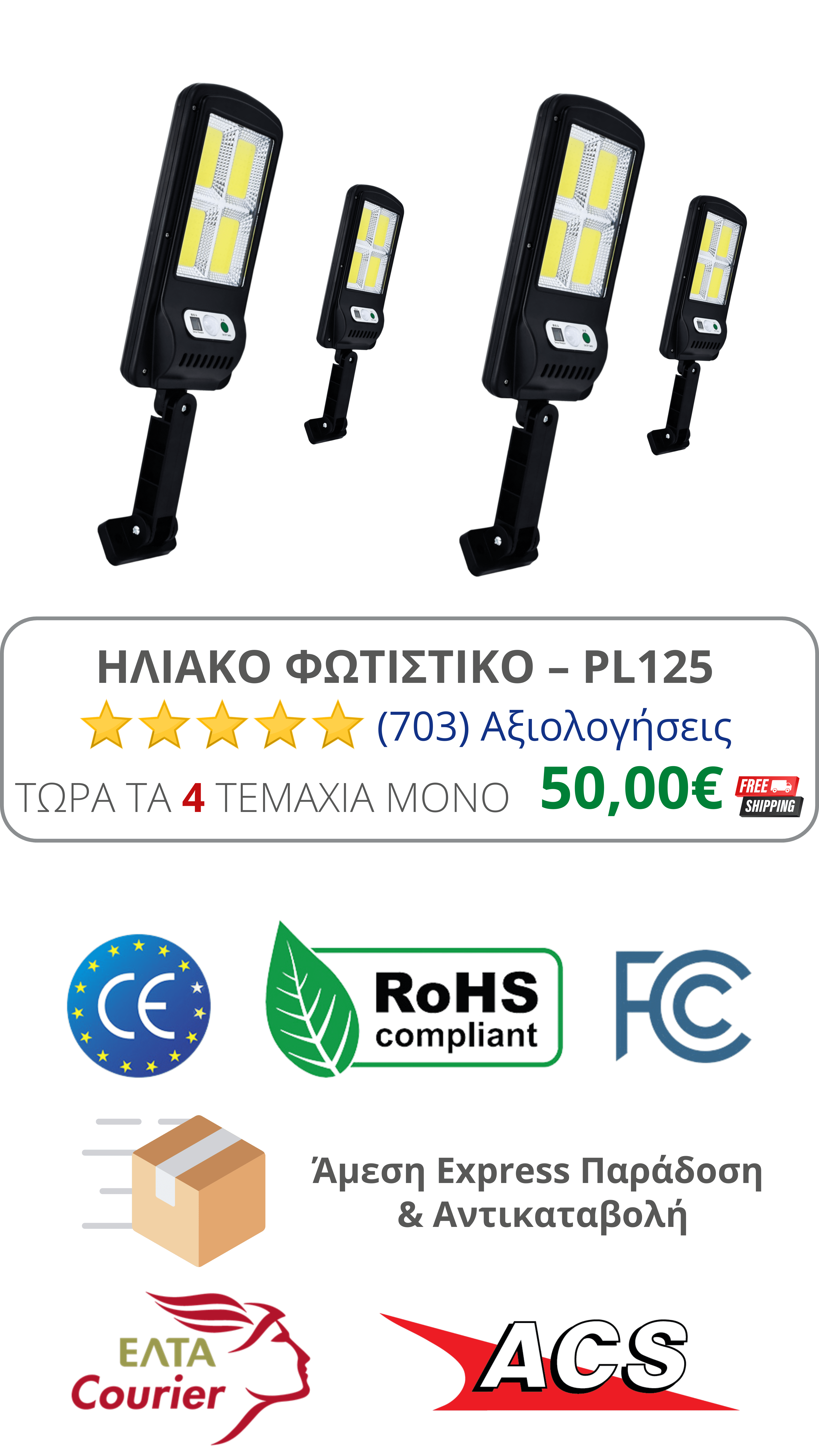 Παραδίδουμε πανελλαδικά μέσω ΕΛΤΑ & ACS Courier εντός 1-3 ημερών.